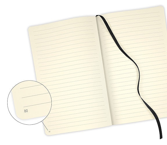પ્રતિષ્ઠિત બ્લેક એન્ડપેપર્સ ગ્લોસ ગોલ્ડ ફોઇલમાં કેસ્ટેલી મિલાનો સાથે બ્રાન્ડેડ છે. સ્મૂધ ક્રીમ પેપર તમને લેખિતમાં એક સુખદ અનુભવ આપે છે. દોરો સીવેલું બાઈન્ડિંગ ઉત્તમ વસ્ત્રો પ્રતિકારની બાંયધરી આપે છે અને 180-ડિગ્રી ઓપનિંગની મંજૂરી આપે છે, જે વારંવાર અને આરામદાયક લેખન માટે શ્રેષ્ઠ ઉકેલ છે .