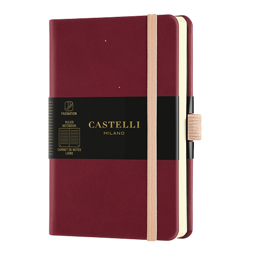 પ્રતિષ્ઠિત બ્લેક એન્ડપેપર્સ ગ્લોસ ગોલ્ડ ફોઇલમાં કેસ્ટેલી મિલાનો સાથે બ્રાન્ડેડ છે. સ્મૂધ ક્રીમ પેપર તમને લેખિતમાં એક સુખદ અનુભવ આપે છે. દોરો સીવેલું બાઈન્ડિંગ ઉત્તમ વસ્ત્રો પ્રતિકારની બાંયધરી આપે છે અને 180-ડિગ્રી ઓપનિંગની મંજૂરી આપે છે, જે વારંવાર અને આરામદાયક લેખન માટે શ્રેષ્ઠ ઉકેલ છે .