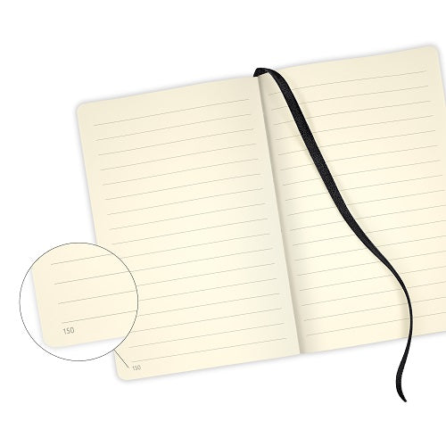 સ્મૂધ ક્રીમ પેપર તમને લેખિતમાં એક સુખદ અનુભવ આપે છે. દોરો સીવેલું બાઈન્ડિંગ ઉત્તમ વસ્ત્રો પ્રતિકારની બાંયધરી આપે છે અને 180-ડિગ્રી ઓપનિંગની મંજૂરી આપે છે, જે વારંવાર અને આરામદાયક લેખન માટે શ્રેષ્ઠ ઉકેલ છે.