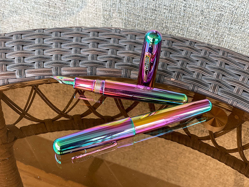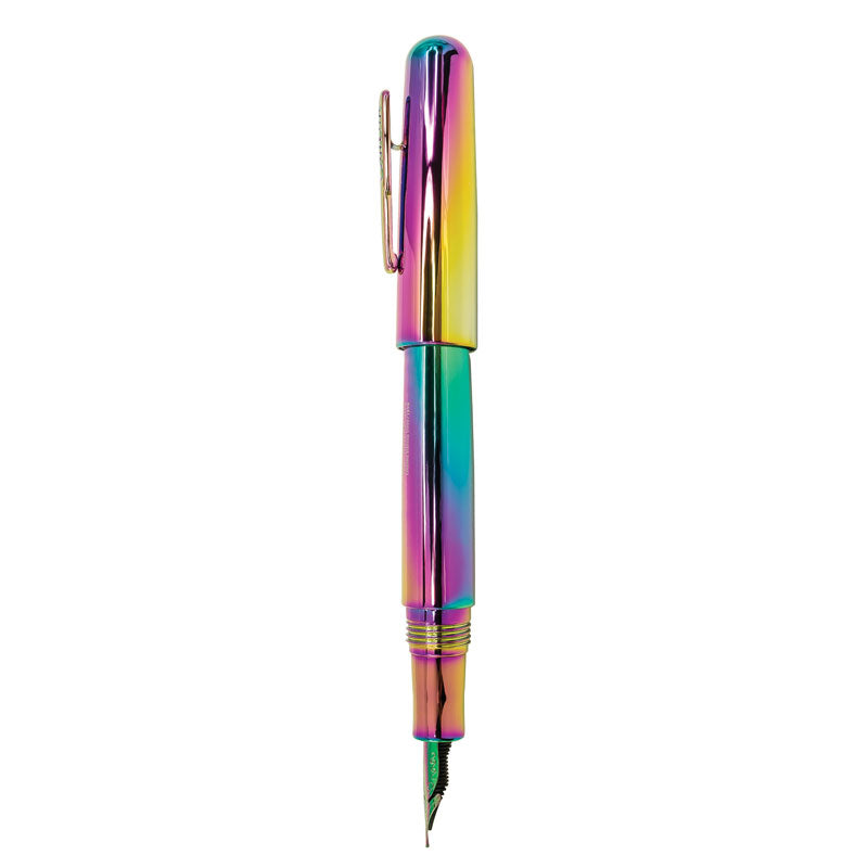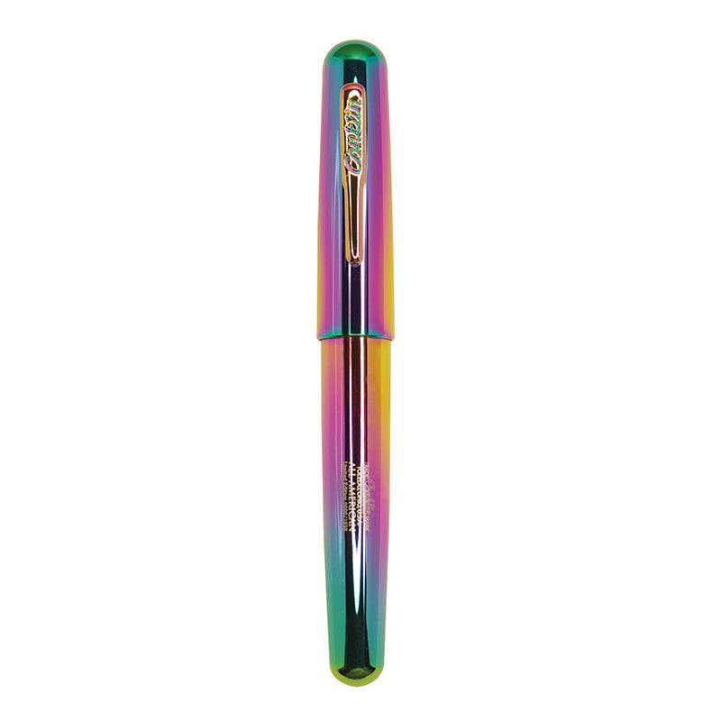 કોંકલિન એ એક સતત વિકસતી બ્રાન્ડ છે, જે દરેક પેન રીલીઝ સાથે વલણો અને શૈલીના નવા સ્તરો બનાવે છે, તેથી અમારી નવી સાથે સ્ટેન્ડઆઉટ અને રેડિયેટ થવાની ખાતરી કરો. તમારી નવી લકી પેન વડે વાતાવરણીય ઘટનાના ગુણોનો સમાવેશ કરો. પ્રથમ વખત, કોન્ક્લિન પેન કંપનીને રેઈનબો PVD કોટિંગ સાથે ઘન પિત્તળમાં મર્યાદિત આવૃત્તિ ઓલ અમેરિકન મોડલ રજૂ કરવામાં ગર્વ છે. મેઘધનુષ્યનો સ્વાદ ચાખવો એ એક વાત છે, પણ એક સાથે લખવું એ બીજી વાત છે. આ રંગો કેટલા અદ્ભુત છે તે જુઓ, નરમ આકાશી જાંબલી-વાદળી ઢાળથી લઈને ચમકતા પીળા સાથે મિશ્રિત સમુદ્ર-ટીલ કોટ સુધી. પેનને પ્રકાશમાં ફેરવવું એ તેના સાચા અમર્યાદિત સારને પ્રતિબિંબિત કરે છે જે સંપૂર્ણ રીતે મેઘધનુષ્ય ડોપેલગેન્જર તરીકે કાર્ય કરે છે. જેમ જેમ તમે લખો છો, તેમ તમે અમારા પ્રથમ રેઈન્બો ઓવરલે નિબ્સ અને ક્લિપ્સની પણ નોંધ લેશો, તેઓ પણ તમારા દરેક સ્ટ્રોક સાથે PVD રેઈન્બો એસેન્સને કેવી રીતે પ્રતિબિંબિત કરે છે તે પકડશે. PVD (ભૌતિક વરાળ ડિપોઝિશન) એ અત્યાર સુધીનું સૌથી ટકાઉ સુપર હાર્ડ કોટિંગ માનવામાં આવે છે જે આજે ઉપલબ્ધ છે; જેથી તમારા પરેડ પર કોઈ સ્ક્રેચ ન વરસે. આ દુર્લભ પેન તેના મેઘધનુષ્ય કોટના ઉત્કૃષ્ટ આંખને ચમકાવતા ગુણો પ્રદાન કરે છે. તેના દ્રશ્ય અજાયબીઓને તમારા હાથમાં પકડો કારણ કે તે તમારી ત્વચા પરના રંગના બીમને રિફ્રેક્ટ કરે છે.