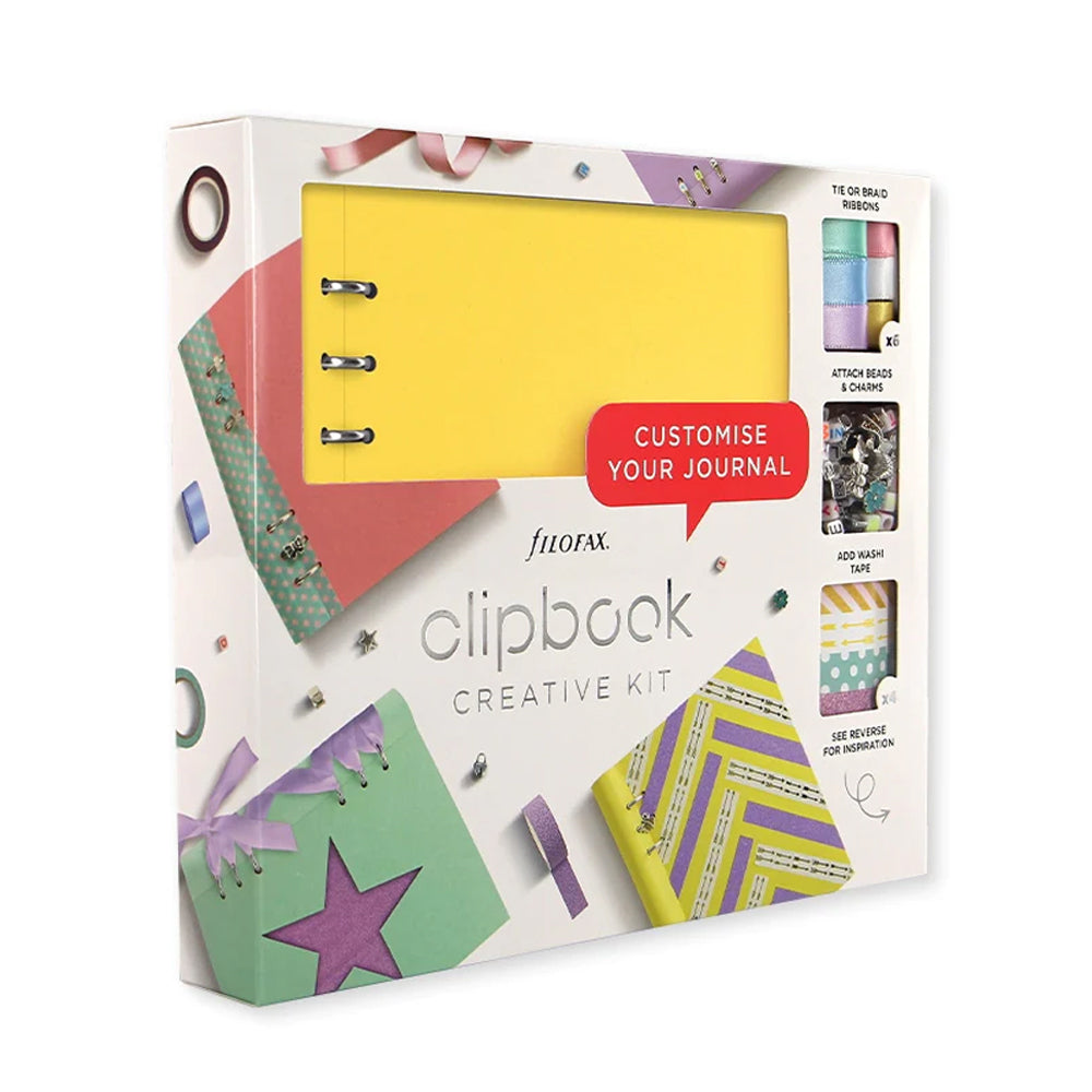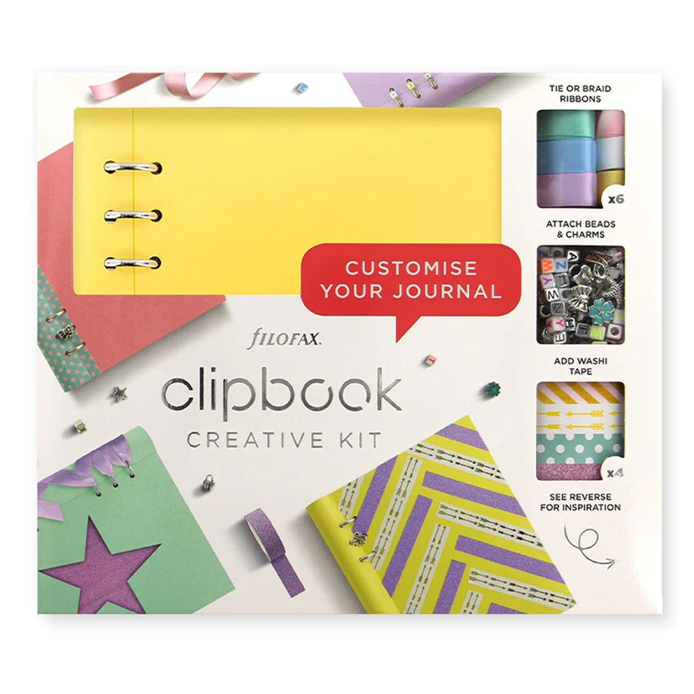 Discover our new and improved Clipbook Creative Kit. We’ve created the ultimate bundle featuring our unique A5 Clipbook with an assortment of craft components. Including ribbon, washi and charms, it gives you the chance to customise your planner inside and out.