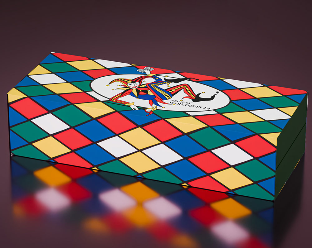 • Inspired by 16th-Century Italian Theater the harlequin pattern, characterized by diamond-shaped motifs, pays homage to the iconic character known for his wit, charm, and vibrant costume.