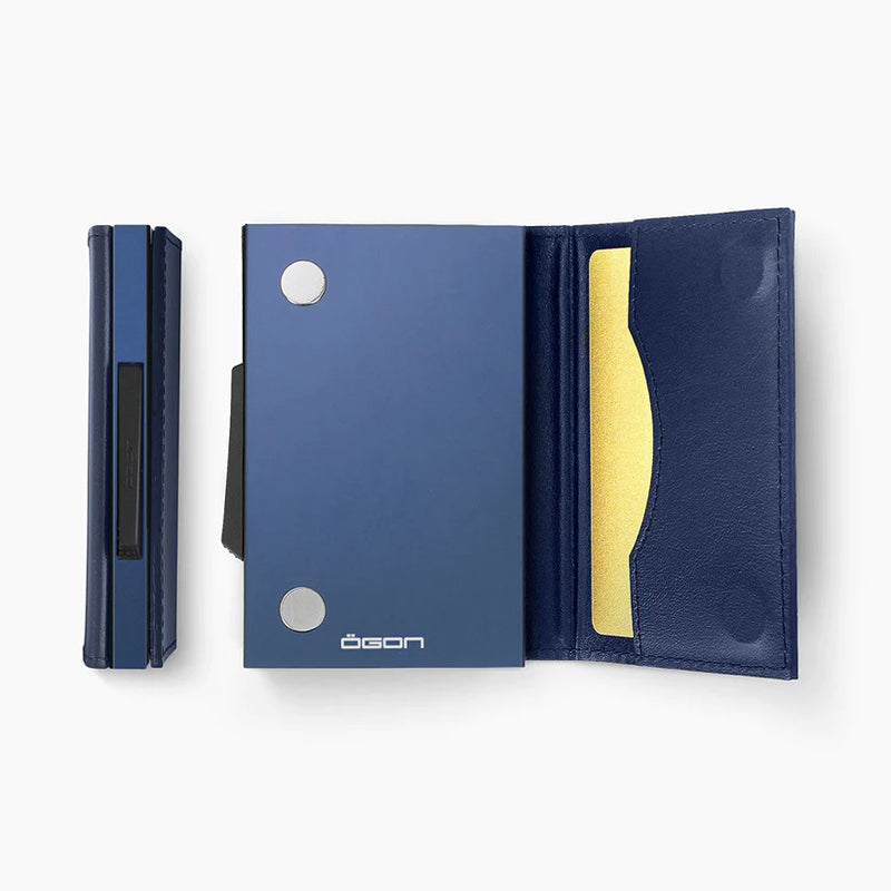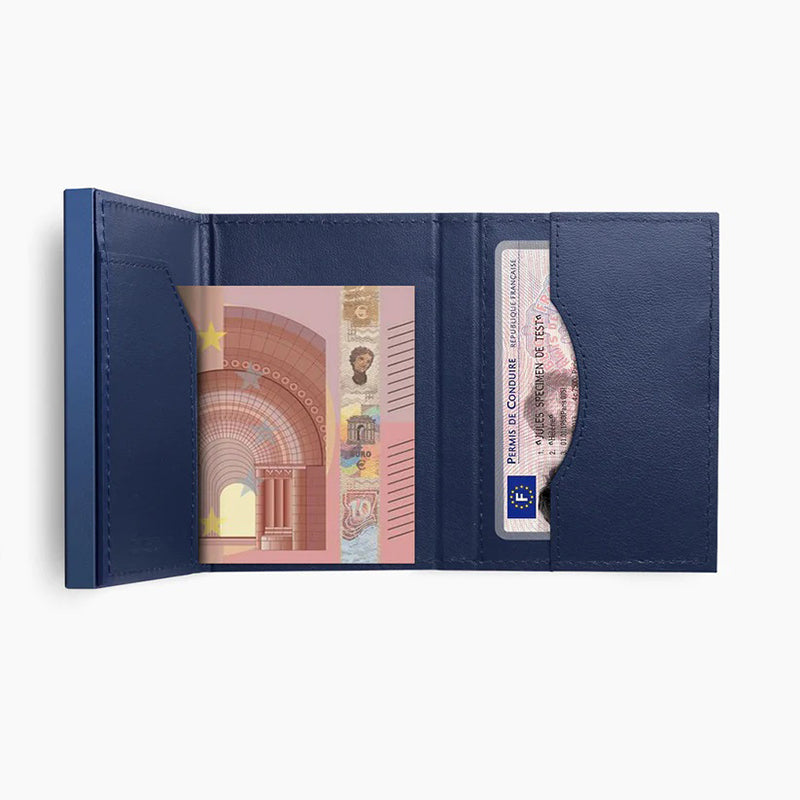 કાસ્કેડ સ્લિમની ડિઝાઇન તમારા કાર્ડને ત્વરિત ઍક્સેસ કરવાની મંજૂરી આપે છે. અંગૂઠાના સરળ દબાણ સાથે, કાર્ડ્સ બહાર નીકળી જાય છે. આંતરિક ચામડાના ખિસ્સામાં બીલ, રસીદો અને વધારાના કાર્ડ હોઈ શકે છે.