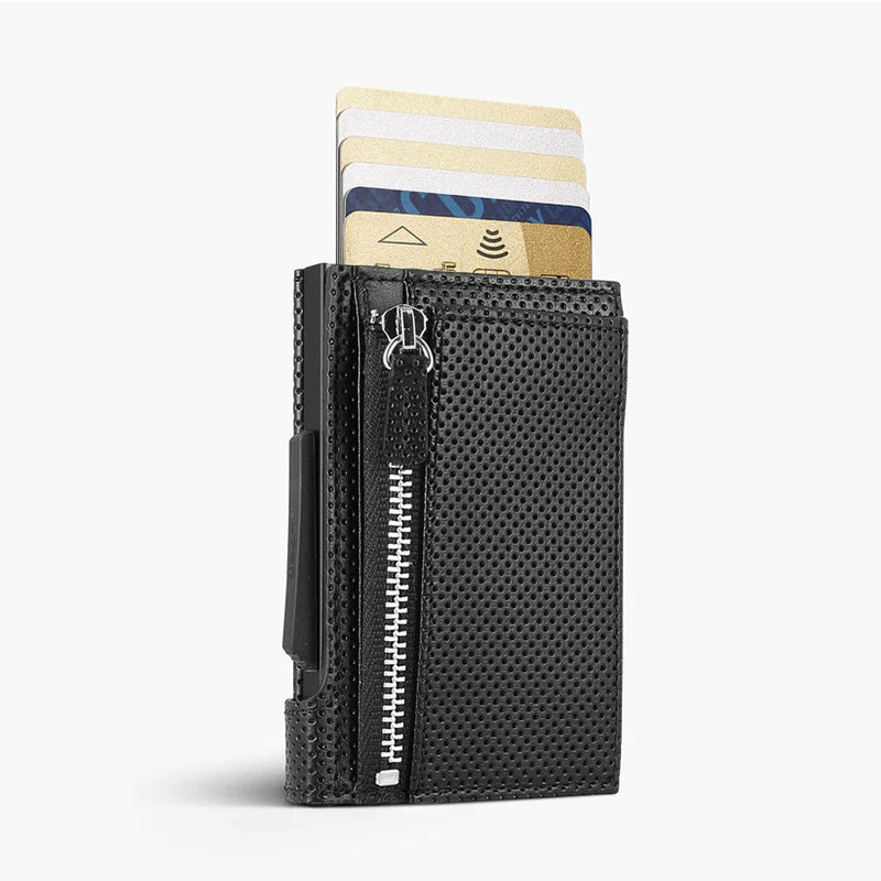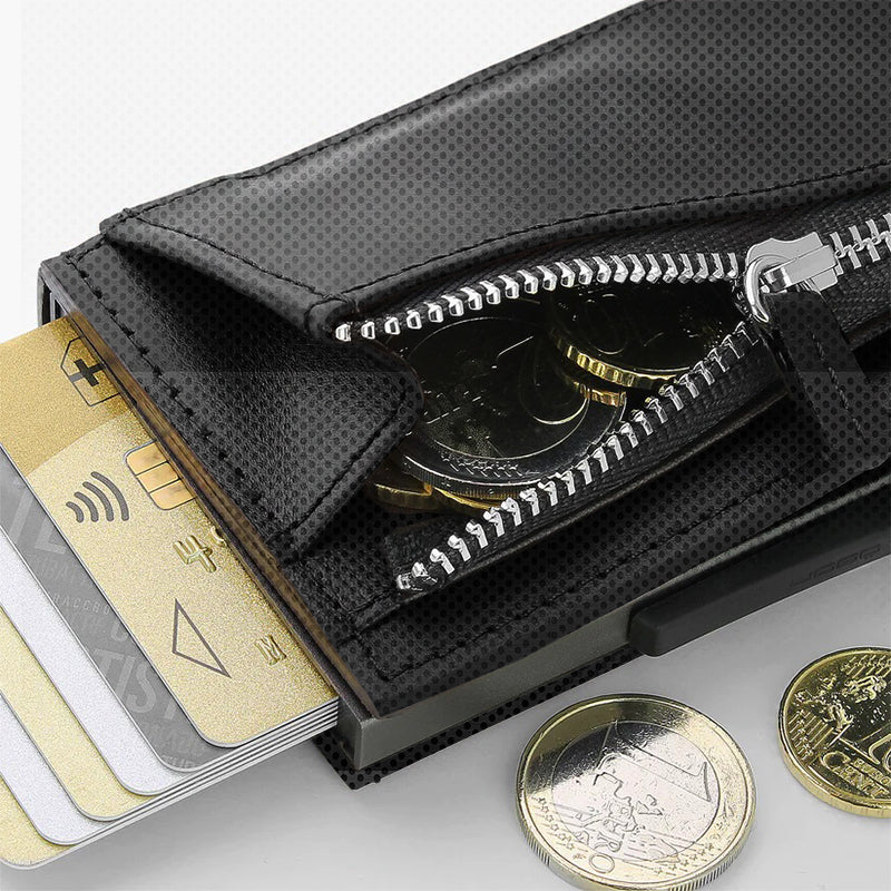 કાસ્કેડ વોલેટ ઝિપ પોકેટ સાથેના સંસ્કરણમાં પણ ઉપલબ્ધ છે. કોમ્પેક્ટ તરીકે જ, કાસ્કેડ ઝિપર તમારા સિક્કા પકડી શકે છે.