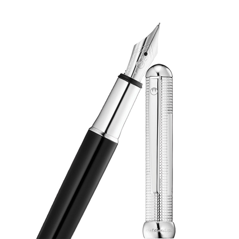 સ્ટીલ નિબ સાથે કોતરણીવાળી જગ્યા બ્લેક લેકર ફાઉન્ટેન પેન સાથે વોલ્ડમેન ચેસ સિરીઝ સ્ક્વેર પેટર્ન