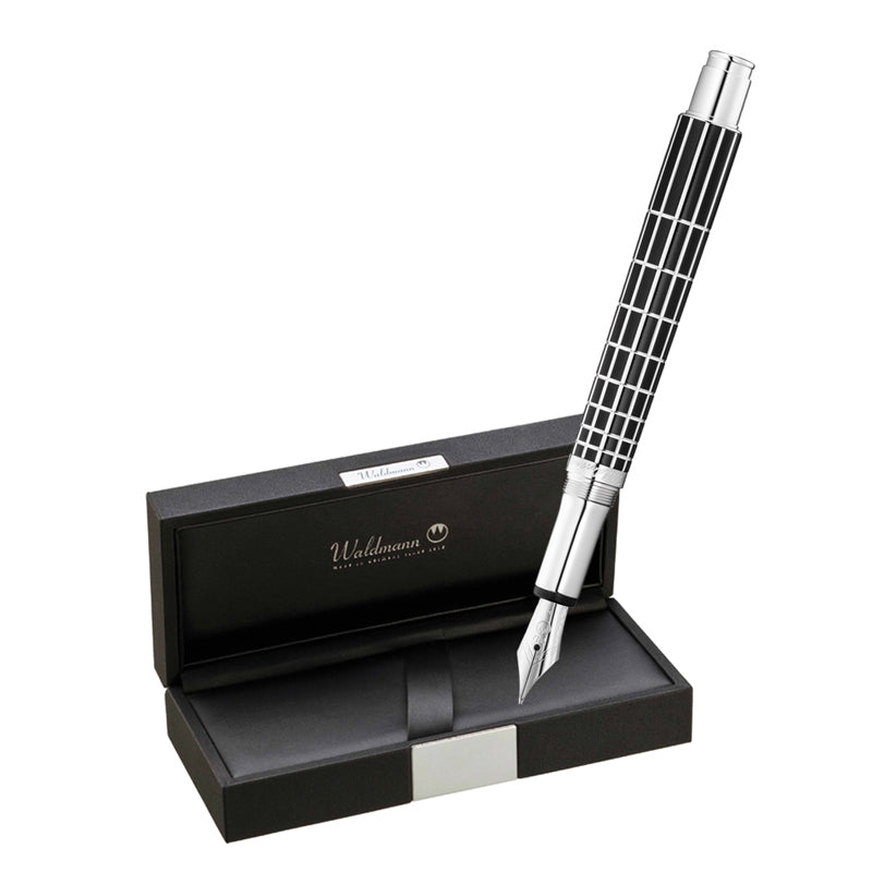 સ્ટીલ નિબ સાથે વોલ્ડમેન એક્સેટ્રા સિરીઝ મ્યુટીલેયર્ડ બ્રિલિયન્ટ બ્લેક લેકર ફાઉન્ટેન પેન