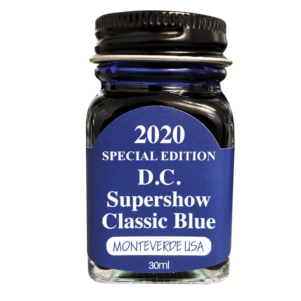 कोर संग्रह से मोंटेवेर्डे 2020 डीसी सुपरशो क्लासिक ब्लू मध्यम छायांकन के साथ एक क्लासिक गहरे नीले रंग की स्याही है और बड़े स्वैब में गुलाबी चमक का एक पॉप है। यह रोडिया पर एक मध्यम निब में 5 सेकंड में सूख जाता है और एक गीला प्रवाह होता है। मोंटेवेर्डे स्याही ऑस्ट्रिया में बनाई जाती है।