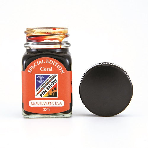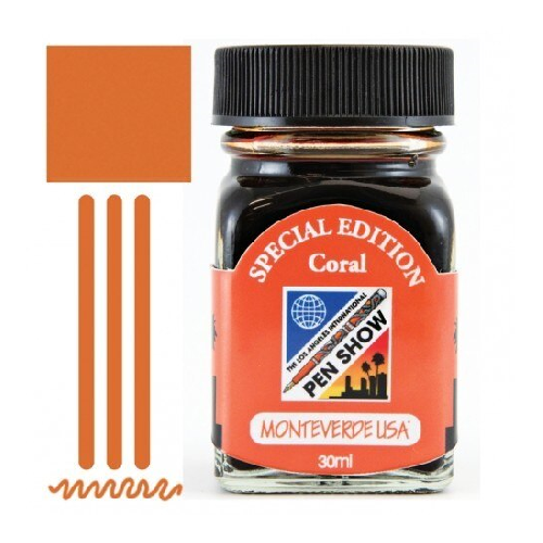 कोरल फाउंटेन पेन स्याही की मोंटेवर्डे 30 मिली बोतल, पहली बार 2019 एलए पेन शो में पेश की गई। कोरल 2019 के लिए पैनटोन कलर ऑफ द ईयर है। पीले अंडरटोन के साथ एक रमणीय कोरल नारंगी रंग, यह नया शेड उतना ही सुंदर और मंत्रमुग्ध करने वाला है जितना कि हमारे समुद्र के नीचे कोरल का प्रदर्शन।