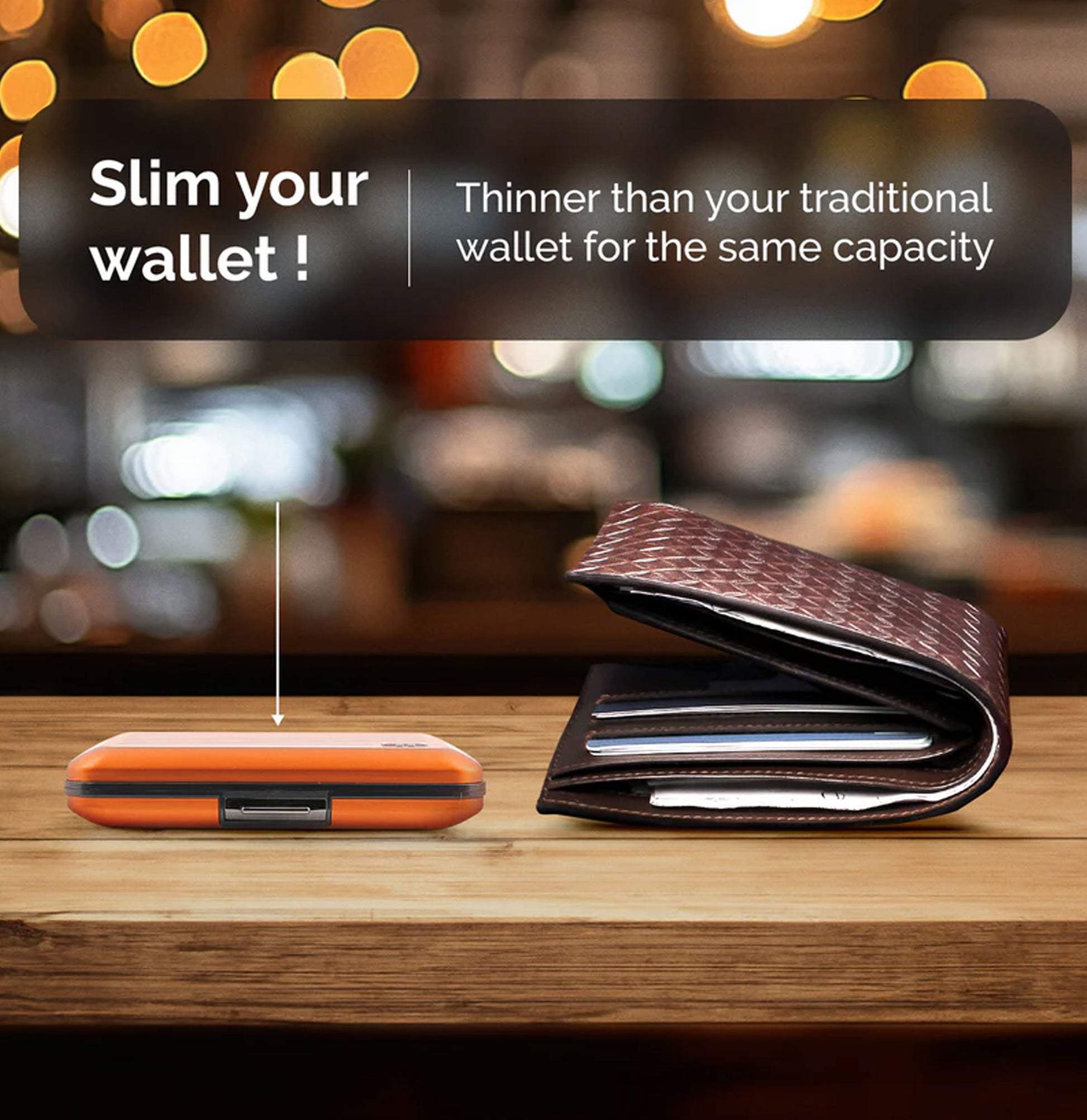 - मेटल लॉक के साथ वाटर रेज़िस्टेंट कार्ड होल्डर / वॉलेट