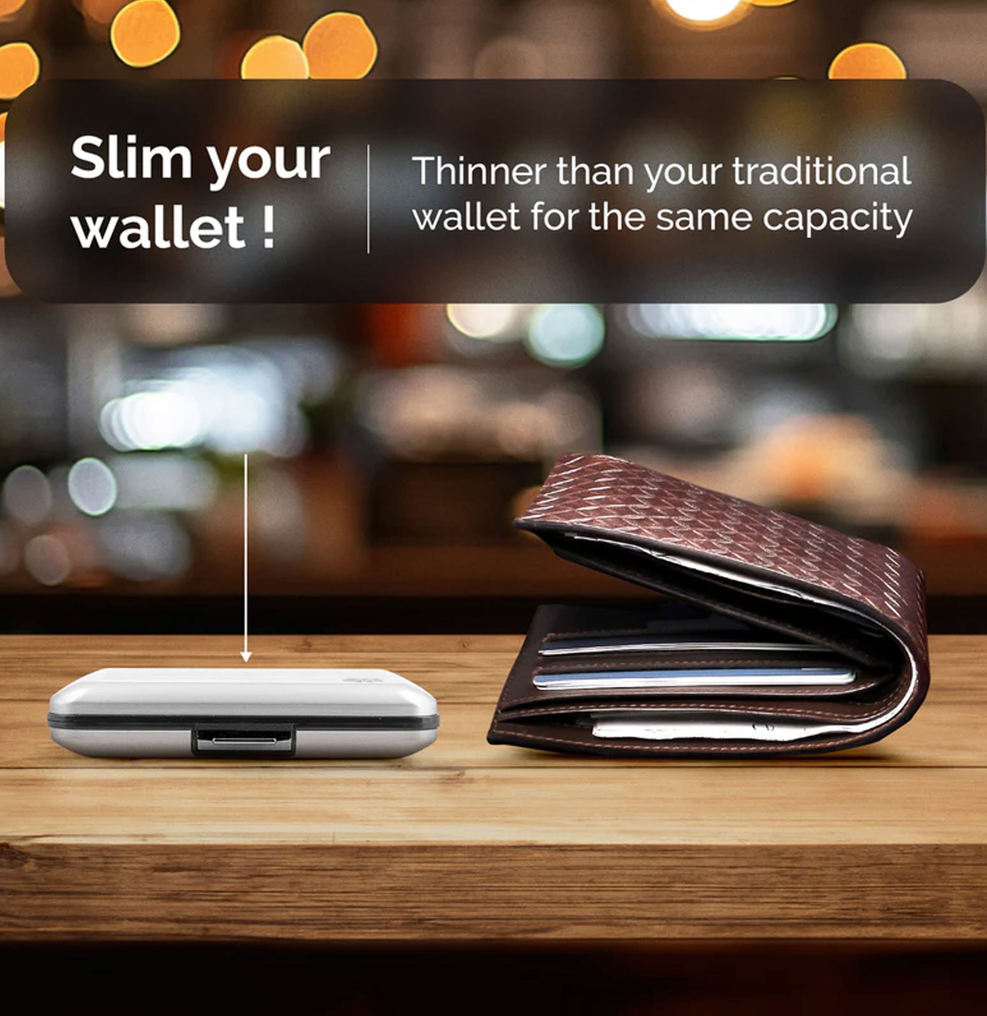 - मेटल लॉक के साथ वाटर रेज़िस्टेंट कार्ड होल्डर / वॉलेट