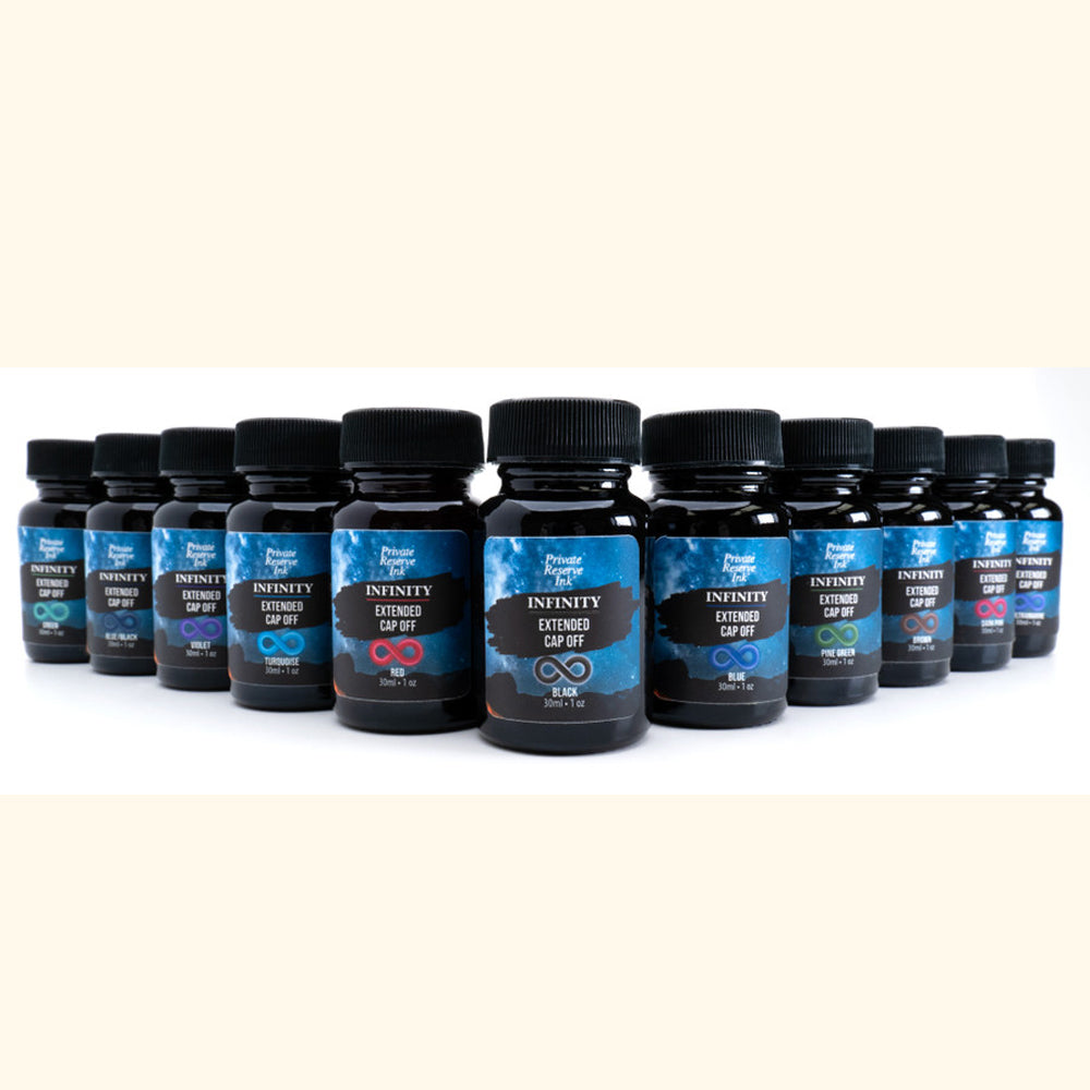 Private Reserve Infinity Turquoise ink offers a refreshing turquoise color that brings vibrancy to writing and artwork. With consistent color saturation and resistance to fading and feathering, it maintains its vivid appearance over time. The extended cap-off time supports continuous writing without drying.