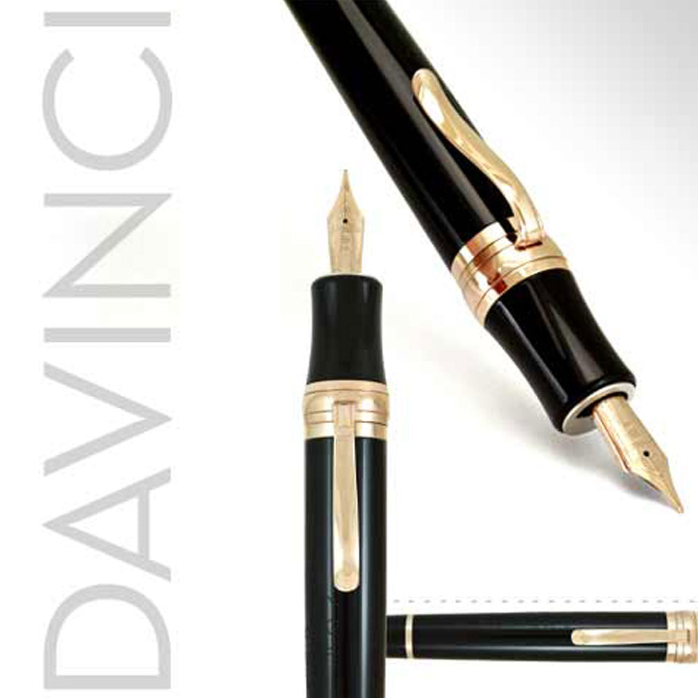 स्टिपुला डेविंसी कैपलेस फाउंटेन पेन - रोज़ ट्रिम के साथ मार्स ब्लैक, स्टील निब