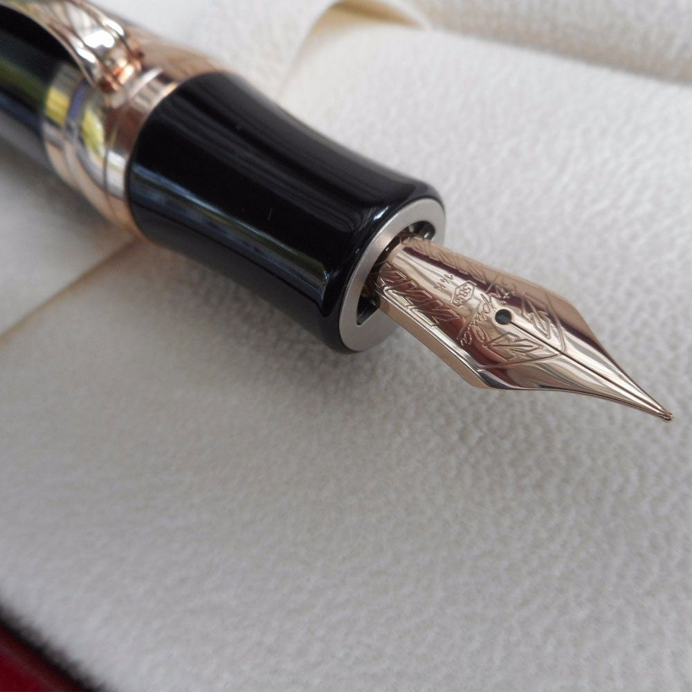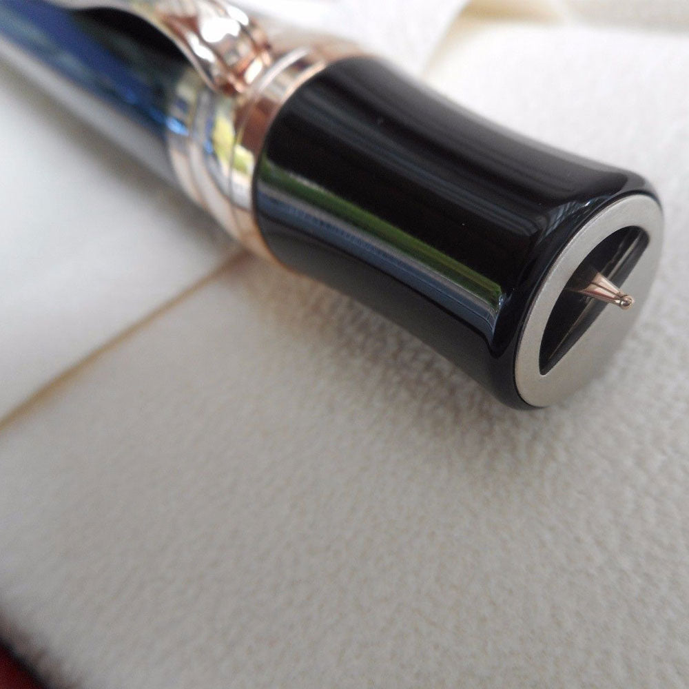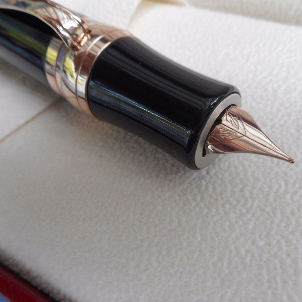 बैरल को आसानी से और सुरुचिपूर्ण ढंग से घुमाकर, मेटल हाफ मून को खोलने की अनुमति देता है और लिखने की स्थिति में निब को खूबसूरती से बाहर की ओर बढ़ाता है.
