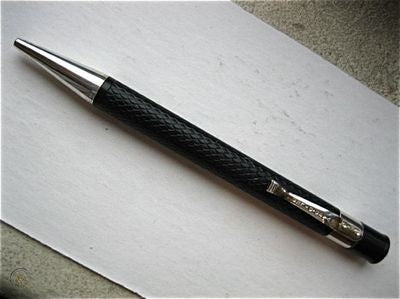 1950 के एक मूल मॉडल के आधार पर, हॉलमार्क वाली ठोस चांदी की विशेषताओं और एक जौ पैटर्न वाले, काले समग्र बैरल के साथ, रेट्रो रेंज युग की शैली और मनोदशा को स्पष्ट करती है। यार्ड-ओ-लेड दस्तकारी, पारंपरिक स्टर्लिंग सिल्वर राइटिंग इंस्ट्रूमेंट्स के लिए प्रसिद्ध है जो एक मास्टर सिल्वरस्मिथ द्वारा हॉलमार्क किए गए हैं। ब्रिटिश कंपनी ने अब ऐक्रेलिक रेज़िन से बना नया रेट्रो फ़िनिश तैयार किया है, जो पुराने ज़माने के हार्ड रबर पेन जैसा दिखता है। दस्तकारी, रिवेटेड क्लिप सहित स्टर्लिंग चांदी की फिटिंग्स अभी भी पारंपरिक टर्न-ऑफ-द-सेंचुरी तकनीकों का उपयोग करके बनाई गई हैं। बॉल पेन में एक स्मूथ ट्विस्ट-मैकेनिज्म होता है। कलम का आकार और वजन: 4.6 x 0.25 इंच,