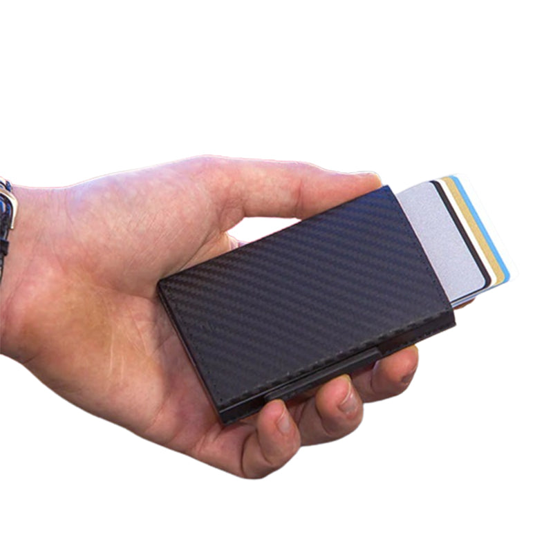 The design of the Cascade Slim allows instant access to your cards. With a simple push of the thumb, the cards slide out. The interior leather pocket can hold bills, receipts and additional cards.