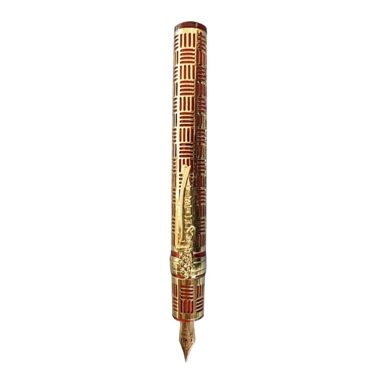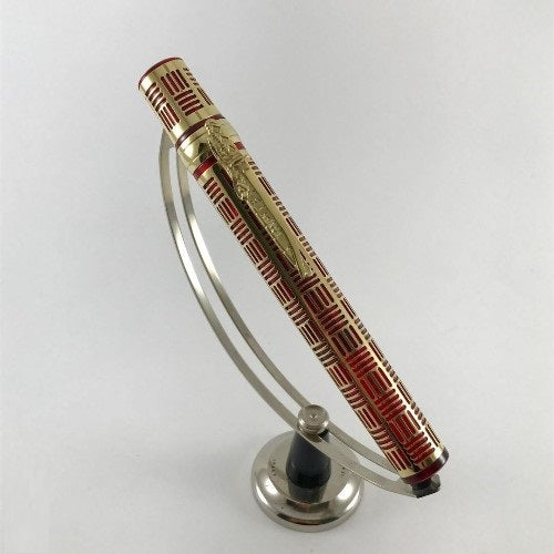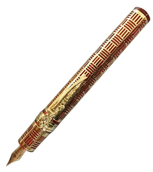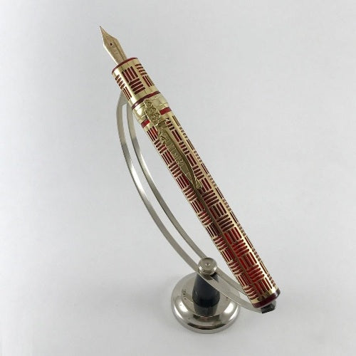 Stipula salutes Italian explorer and travel writer Fosco Maraini with a beautiful limited edition that echoes the golden age of fountain pens, but with a modern twist”. The retractable nib design is part of Stipula’s well known DaVinci collection of capless writing instruments. Crafted in red translucent resin, the pen is then overlaid with an intricate cut pattern plated with luxurious yellow gold. The innovative engineering lies within the pen: the mechanism takes flight by simply turning the barrel, which gracefully propels the 14K gold nib outward into writing position. As you close the pen, a circular hood slowly covers the retracting nib to cover it entirely. This patent pending design and mechanism is extremely unique with its retractable point giving life to a refined writing instrument that does not need a cap. Fosco Maraini was the author of many pioneering travel books, most famously those based on his extensive travels through Tibet and Japan. His scholarly works and lively reportage have been translated throughout the world, while his photographs of Tibet and the Ainu people are considered important historical records of the disappearing cultures. The Fosco Maraini fountain pen is a numbered limited edition of 193 pieces and comes fitted with Stipula’s 14K STI Flex Ultrafine Ideografico nib. Fills via standard cartridge or converter